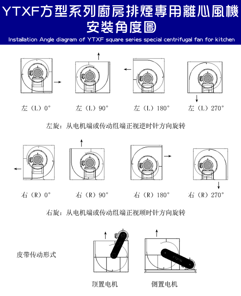 YTXF方型系列廚房專用離心風機是一種高效率、轉速低、低噪音離心風機,它是由前傾多翼式葉輪的結構,方型結構機殼,安裝便捷。