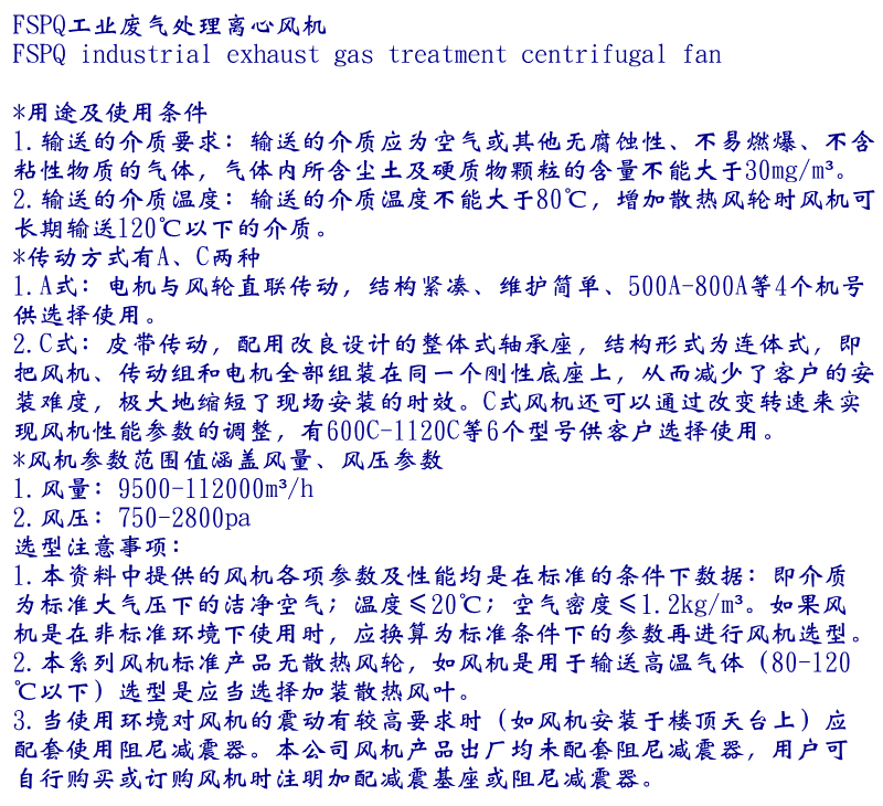 FSPQ工業(yè)離心通風機