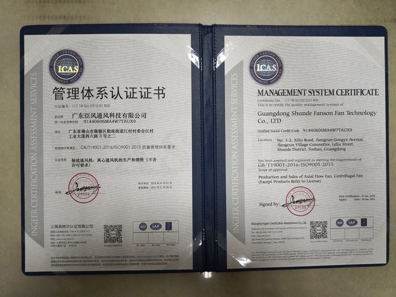 風臣風機成為中國信用企業(yè)認證體系示范單位
